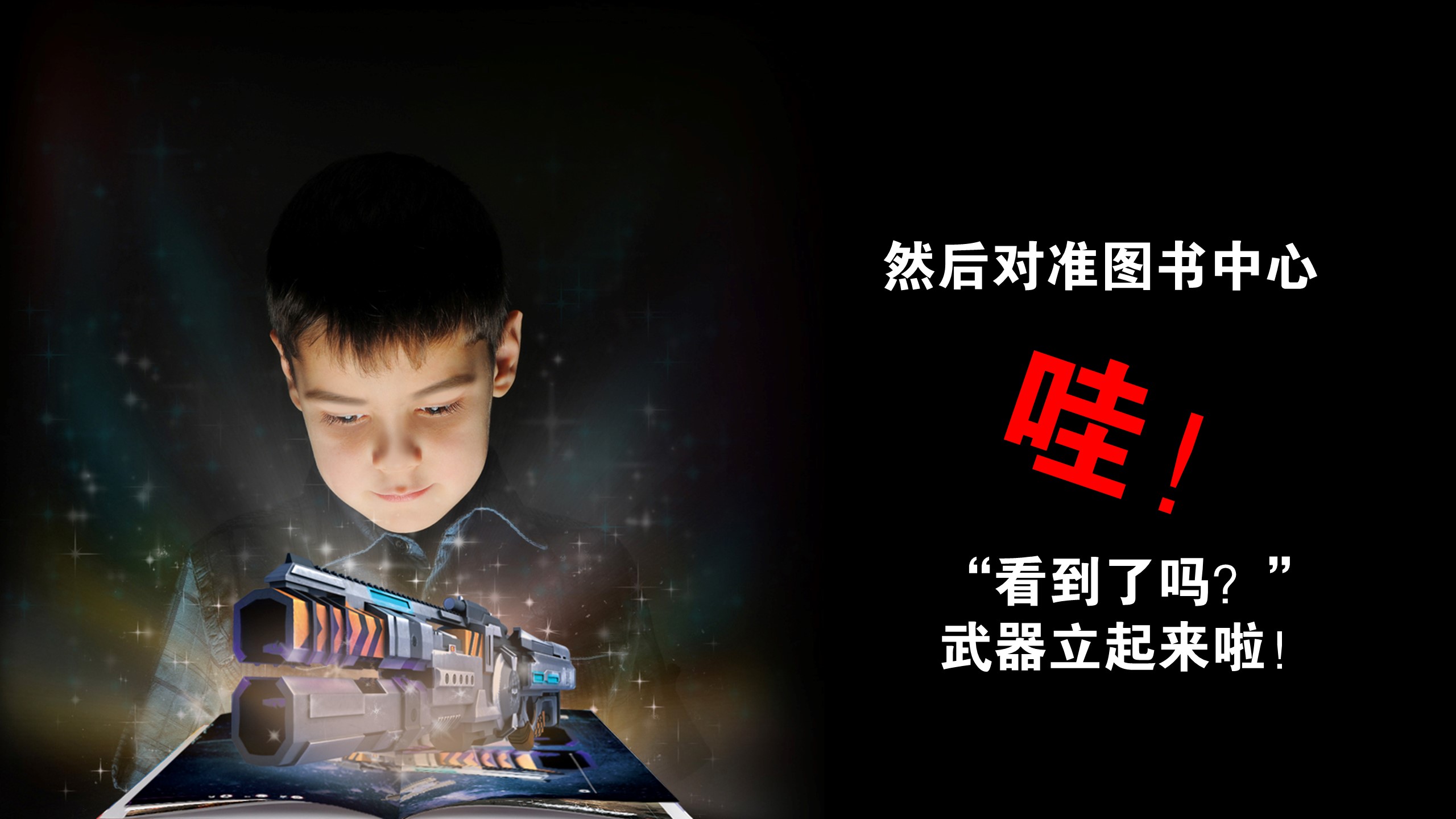 你看见武器从图书里飞出来么? 你觉不觉得这有一点不可思议!