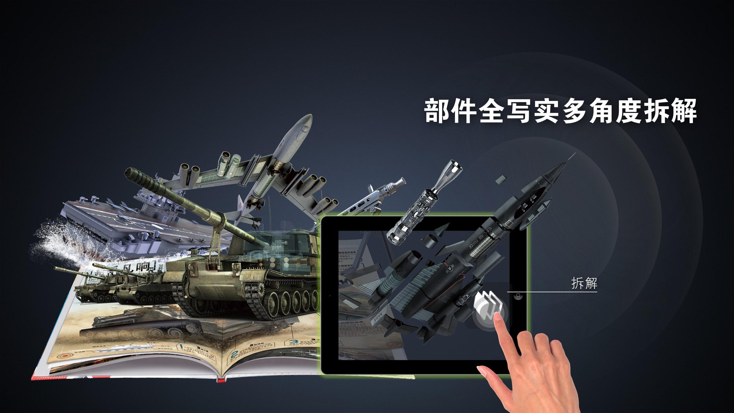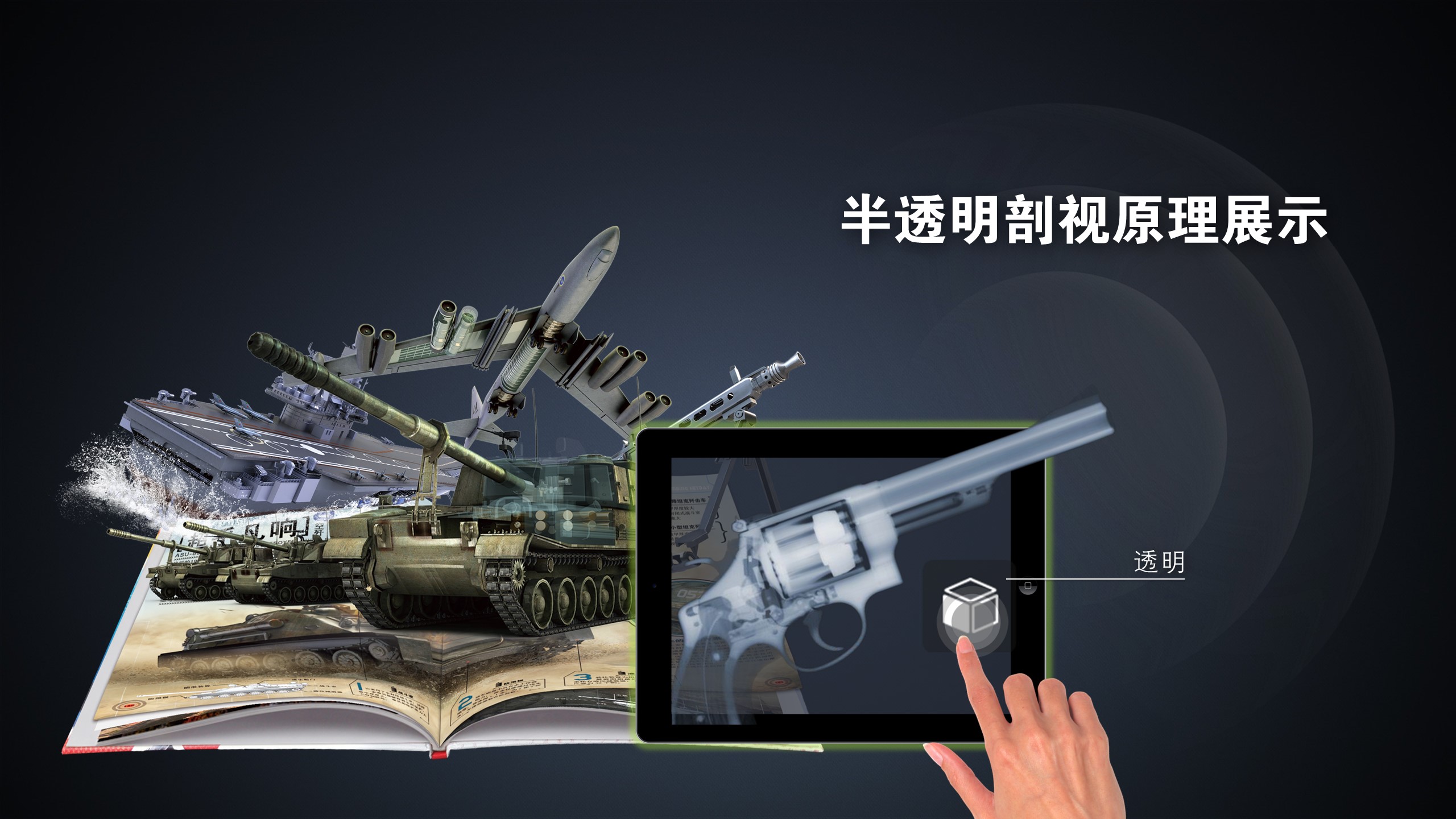 《超级武器大师》为国家新闻出版改革发展项目库重点项目,是一套原创的大型三维剖视科普图书,收录了陆、海、空天经典的武器装备,书中结合了先进的增强现实技术(AR),主要将图书中武器的平面文字和图画通过三维立体形式呈现给受众,使受众不仅能够通过虚拟现实系统感受到在客观物理世界中所经历的“身临其境”的逼真性 ,而且能够突破空间、时间以及其它客观限制 ,感受到在真实世界中无法亲身经历的体验。